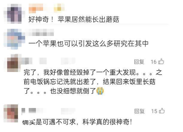 “好神奇!苹果居然能长出蘑菇”